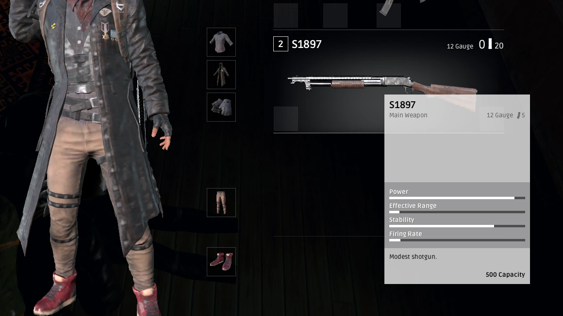 The S1897 excels in clearing houses with the simple point-and-shoot principle, its spread allowing a greater probability of hitting the target. Careful aim is still essential since missing one shot can easily result in death due to the time required to rack the pump.
